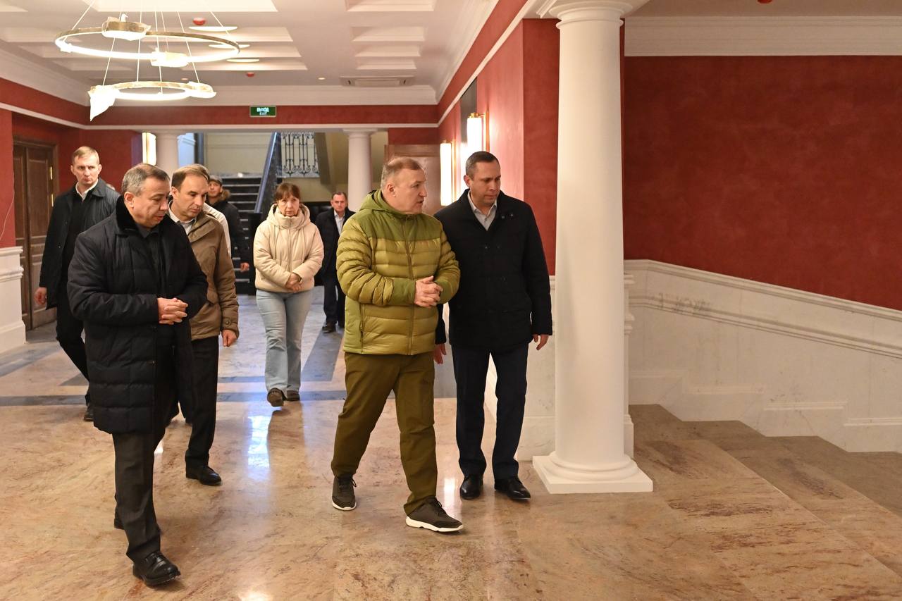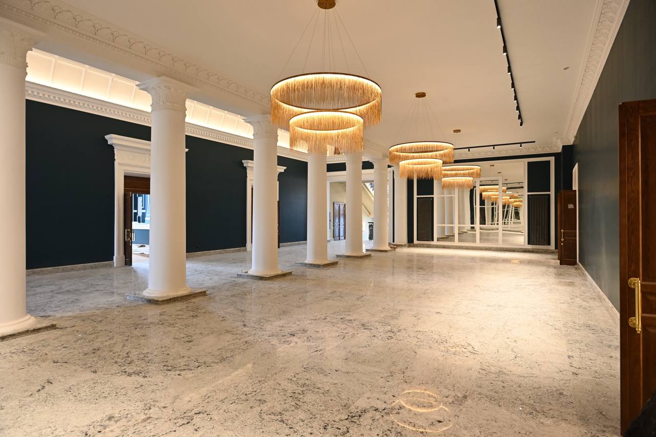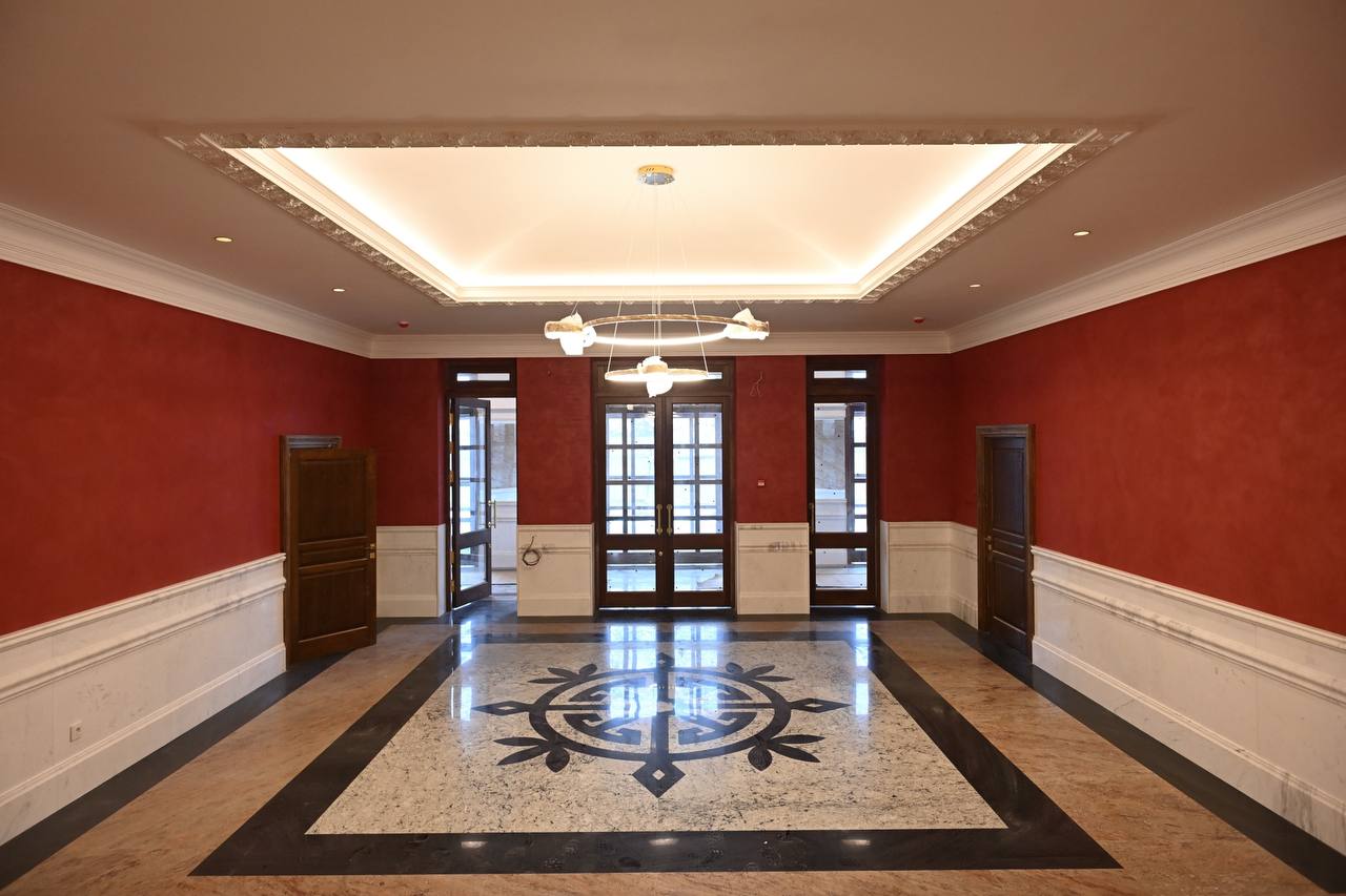 وإطلع مراد قمبل على تناسق الأثاث مع فن العماره في المسرح بعد الصيانه .